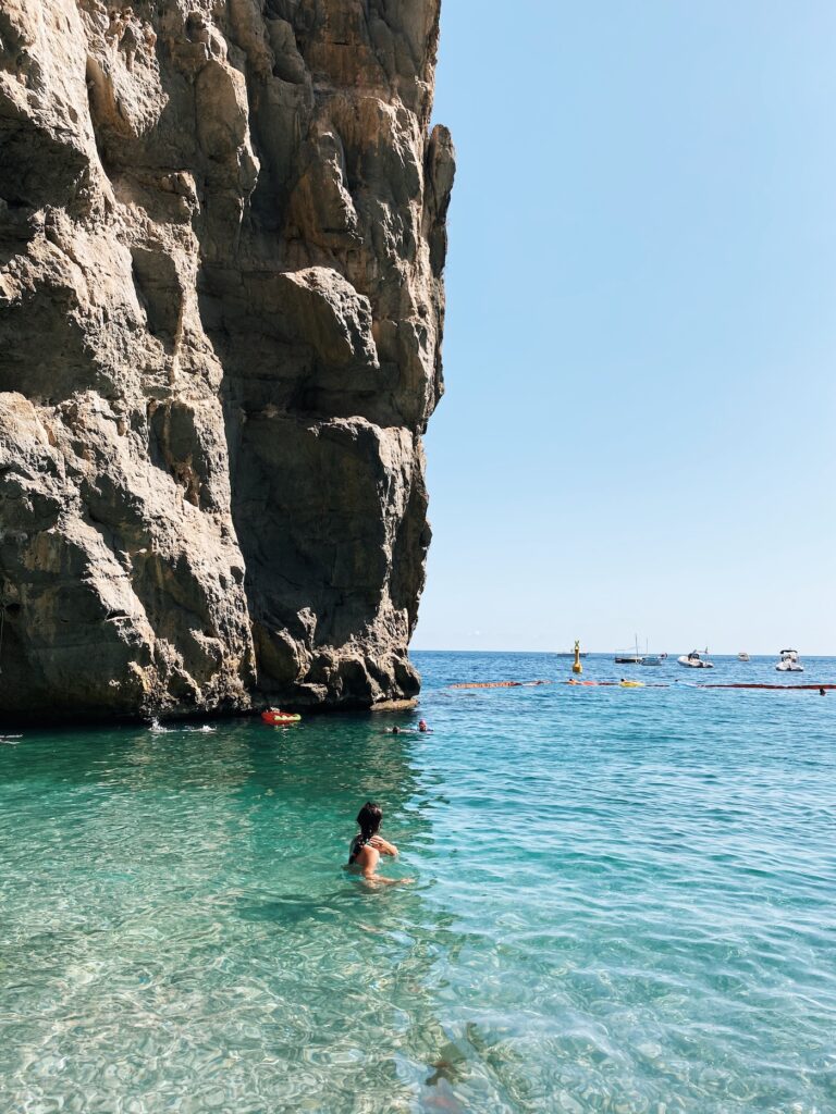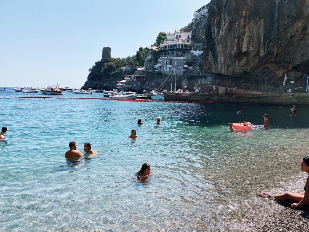 Foram 10 min caminhando e chegamos em Marina di Praia. Uma parte da praia é pública, então passamos o dia por ali mesmo, curtindo o mar e pegando um sol! A água é cristalina e foi a melhor praia que pegamos nessa viagem.